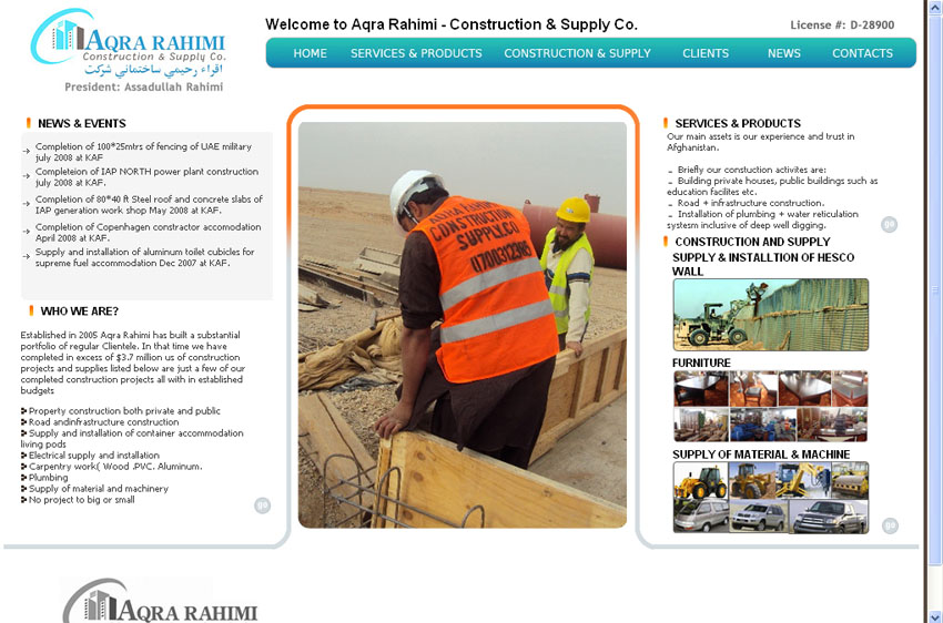Company:- We welcome projects of all sized and are committed to delivering the highest level of value and services to our customer, Our main assets is our experience and trust in Afghanistan.